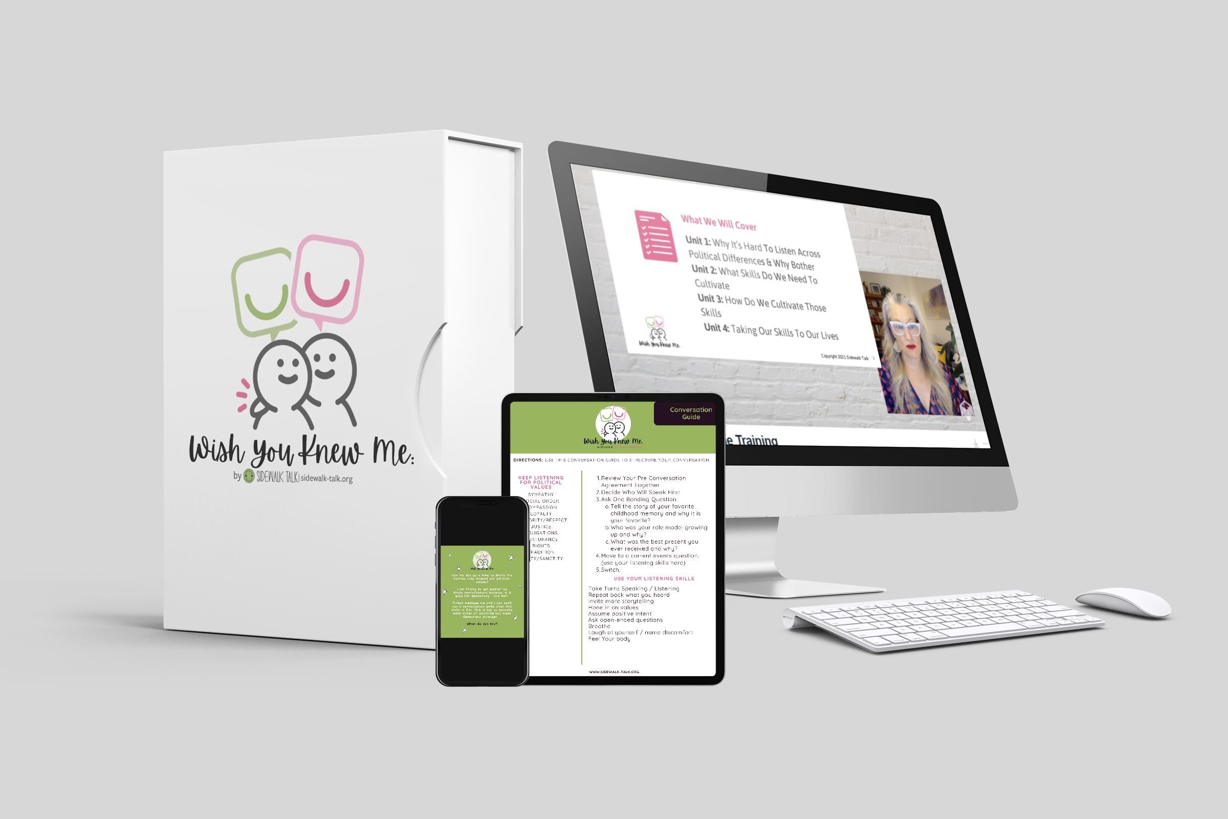 Participants will learn how to constructively and empathetically talk to others about their beliefs, gaining techniques to empower their conversations with centered listening and deeper understanding. But most of all, those part of the Wish You Knew Me workshop will walk out with a soup to nuts conversation guide that they can use to invite others into fun, structured, smart conversations that just might lead to greater connection, and in turn, help unite our divided world.